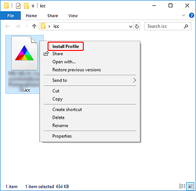 Clique com o botão direito no perfil ICC que você deseja usar.