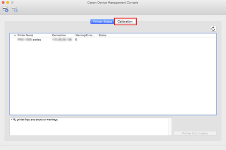 From the printer list, select the printer for which you want to check the advisability of executing color calibration.