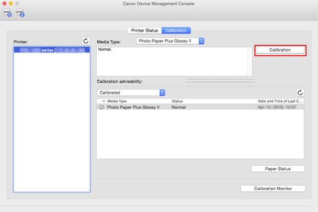 The paper sources for which color calibration can be performed are displayed for the paper in Media Type.