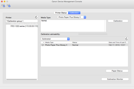 Drucker mit Kalibrierungslinks werden unter demselben Kalibrierungsgruppennamen gruppiert und angezeigt.