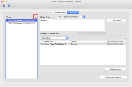 Kalibrierungslinks werden für mehrere Drucker ausgeführt, die die folgenden Bedingungen erfüllen.