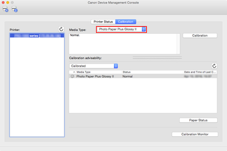 En la lista de impresoras, seleccione la impresora para la que desea comprobar la conveniencia de ejecutar la calibración del color.