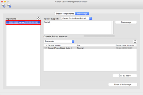 Dans la liste des imprimantes, sélectionnez l'imprimante pour laquelle vous souhaitez consulter le journal d'exécution de l'étalonnage des couleurs.