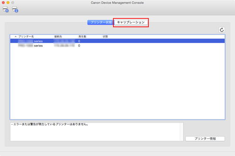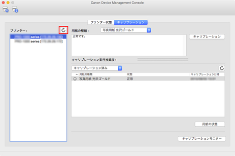 2. プリンターリストの右横にあるボタンをクリック(または表示メニューからキャリブレーションリンクの更新を選択)