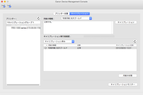 キャリブレーションリンクされているプリンターは、同じキャリブレーショングループ名でグループ化されて表示されます。