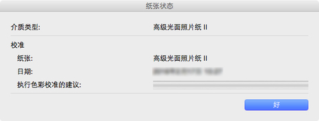 仅在对所选纸张执行色彩校准后显示所选纸张的信息。