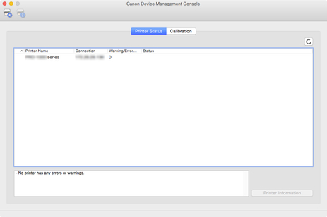 Register the printer for which you want to check the printer status or color calibration execution status.