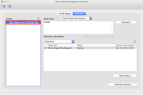 En la lista de impresoras, seleccione la impresora para la que desea comprobar la conveniencia de ejecutar la calibración del color.