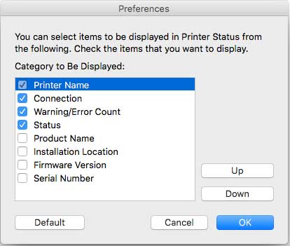 Puede seleccionar el elemento que se muestra en Estado de la impresora (Printer Status) entre los siguientes. Seleccione el elemento que desea que aparezca en la pantalla principal.