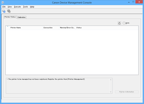 From the Start menu, click All Programs > Canon Utilities > Device Management Console > Device Management Console.