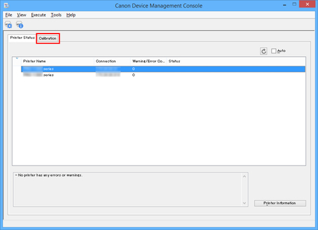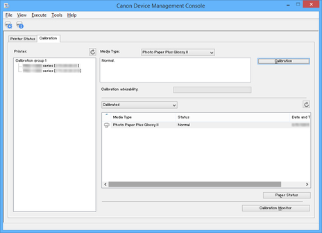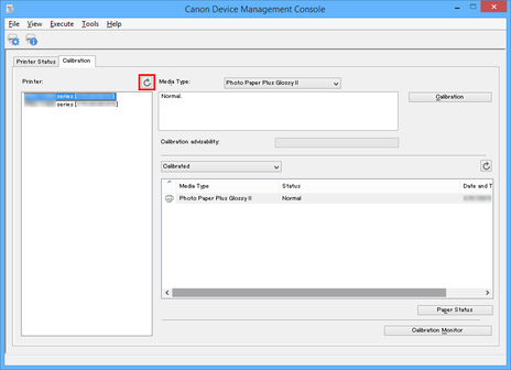 is not displayed.When "The calibration target in the media information file is not up-to-date." appears for a printer, export the media information for any printer not displaying this message to a file using Media Configuration Tool, and then import the exported media information to the printer displaying this message. For information on exporting and importing media information, search for and refer to "Media Configuration Tool Guide" from the home page of the Online Manual for your model.