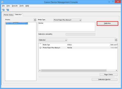 The paper sources for which color calibration can be performed are displayed for the paper in Media Type.