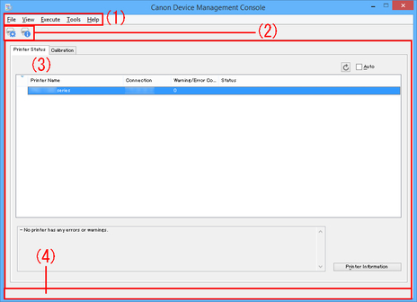 Click Printer Status tab to display Printer Status sheet, and click Calibration tab to display Calibration sheet. You can also use the View menu in the menu bar to select the display.
