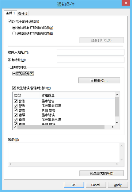 打印机状态符合设置条件时,会向指定收件人自动发送电子邮件。
