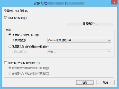 要指定将执行色彩校准的日期和时间,请单击日程表按钮打开日程表设置对话框。
