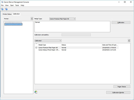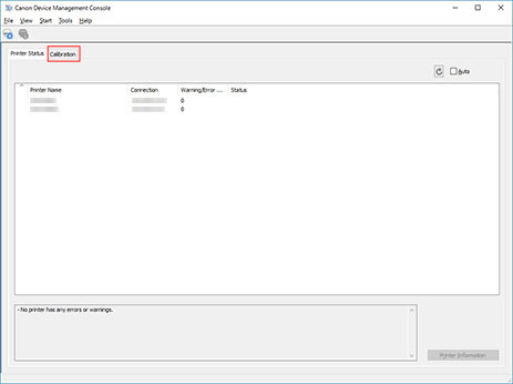 Wählen Sie in der Druckerliste den Drucker aus, für den Sie eine Farbkalibrierung ausführen möchten.