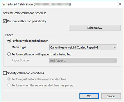 Um Datum und Uhrzeit für die Ausführung der Farbkalibrierung anzugeben, klicken Sie auf die Schaltfläche Zeitplan, um das Dialogfeld Zeitplaneinstellungen aufzurufen.
