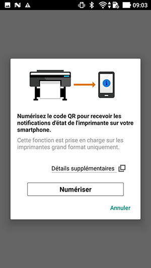 L'écran suivant s'affiche lorsque vous numérisez le Code QR pour Canon PRINT.