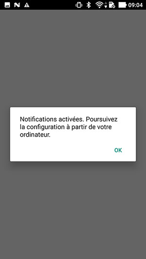 Quand le message "Notifications activées. Poursuivez la configuration à partir de votre ordinateur." s'affiche, touchez OK.