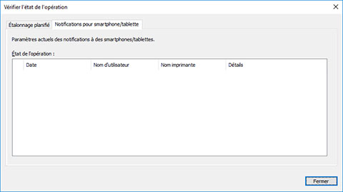 Sélectionnez l'option Vérifier l'état de l'opération dans le menu Outils, puis cliquez sur l'onglet Notifications pour smartphone/tablette.