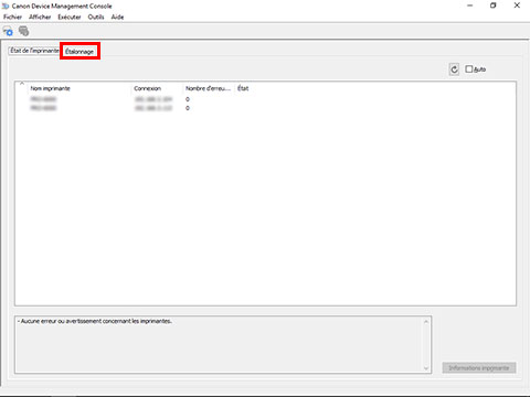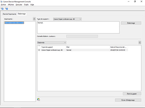 Quand vous sélectionnez une imprimante qui a été définie pour effectuer régulièrement un étalonnage des couleurs,