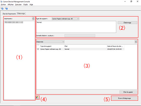 (3) Zone du journal d'exécution de l'étalonnage des couleurs