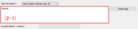 s'affiche pour le papier spécifié dans Type de support de "(2) Zone d'exécution de l'étalonnage des couleurs".