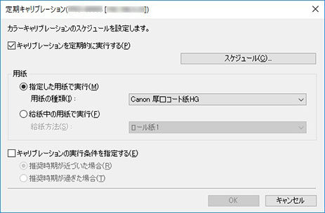 [スケジュール]ボタンをクリックすると、[スケジュール設定]ダイアログボックスが表示され、カラーキャリブレーションを行う日時が設定できます。