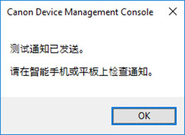 测试通知中发送的信息出现时,请确认智能手机上的“通知设置已开启”,然后单击确定按钮。