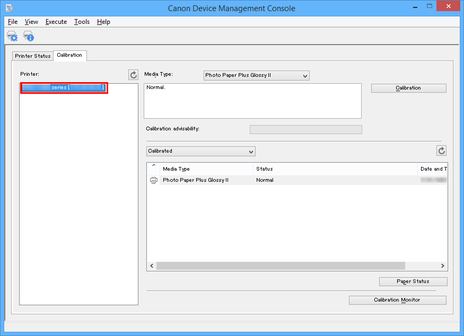 从打印机列表中,选择要检查色彩校准执行日志的打印机。