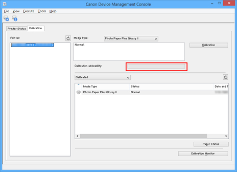 使用主屏幕上的校准选项卡可以检查建议的色彩校准执行级别和执行日志。