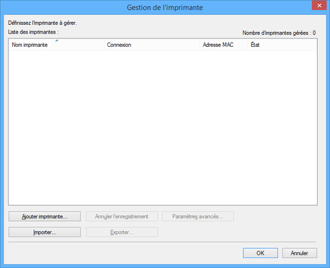 La boîte de dialogue Gestion de l'imprimante s'affiche.