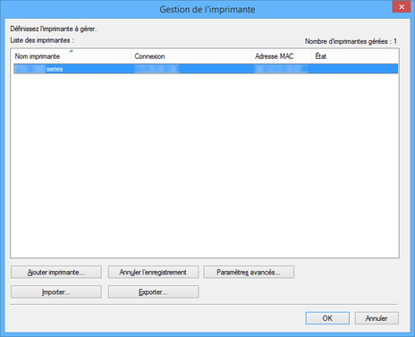 Sélectionnez l'imprimante à supprimer, puis cliquez sur le bouton Annuler l'enregistrement.