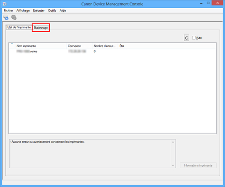 Dans la liste des imprimantes, sélectionnez l'imprimante pour laquelle vous souhaitez consulter le journal d'exécution de l'étalonnage des couleurs.