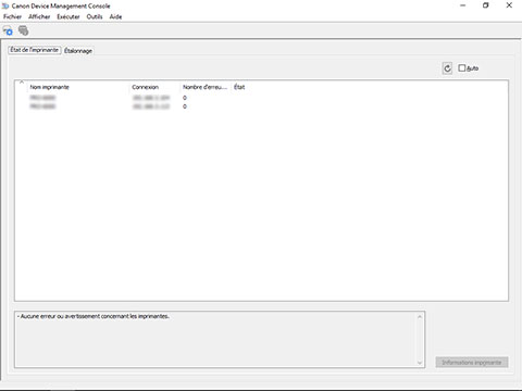 Quand vous sélectionnez une imprimante qui a été définie pour effectuer régulièrement un étalonnage des couleurs,