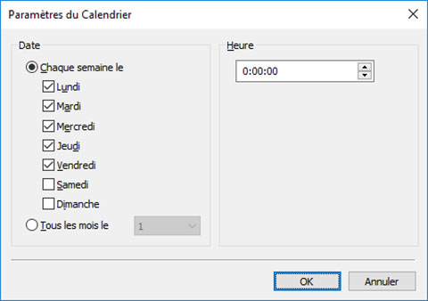 La boîte de dialogue Paramètres du Calendrier s'affiche.