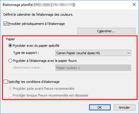 Cochez la case Procéder périodiquement à l'étalonnage et cliquez sur le bouton Calendrier.