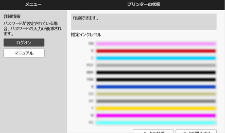 ウェブブラウザーが起動し、選んだプリンターのリモートUIのメイン画面が表示されます。
