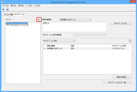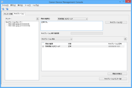 キャリブレーションリンクされているプリンターは、同じキャリブレーショングループ名でグループ化されて表示されます。