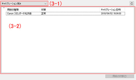 [用紙の状態]ダイアログボックスが表示され、選んだ用紙のカラーキャリブレーション状況が確認できます。