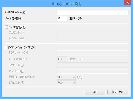 POP before SMTPを使用するかどうかを選びます。 POP before SMTPを使用する場合は、チェックマークを付けます。