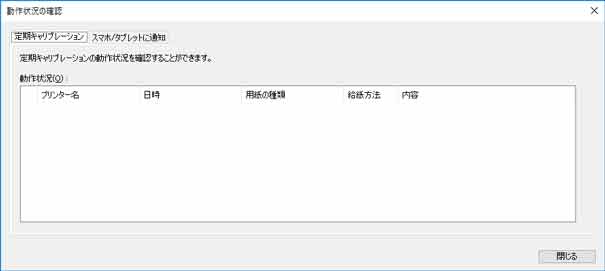 定期的に行われるカラーキャリブレーションの動作状況やスマートフォン/タブレットへの通知結果が確認できます。