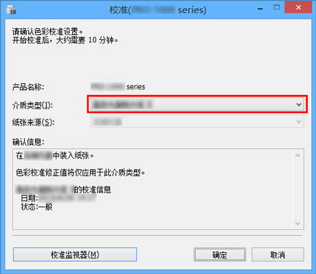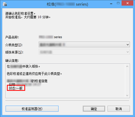 根据所用型号的不同,对于通过USB连接的打印机,无法通过关闭此对话框后显示校准监视器对话框来检查其色彩校准的进度状态。
