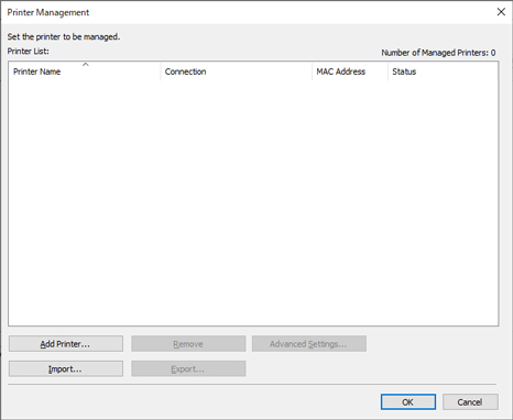 Die registrierten Drucker werden im Dialogfeld Druckerverwaltung angezeigt.