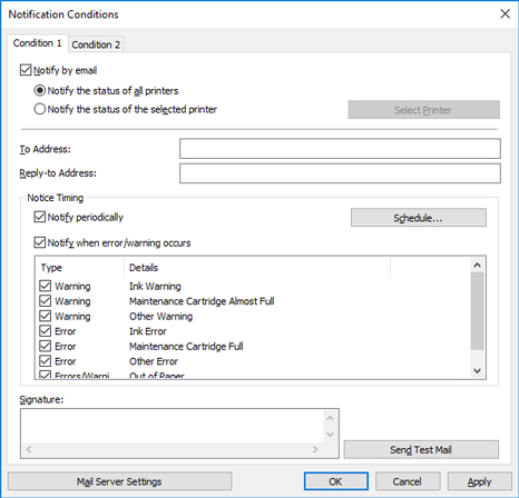 Senden von Benachrichtigungen über den Druckerstatus per E-Mail