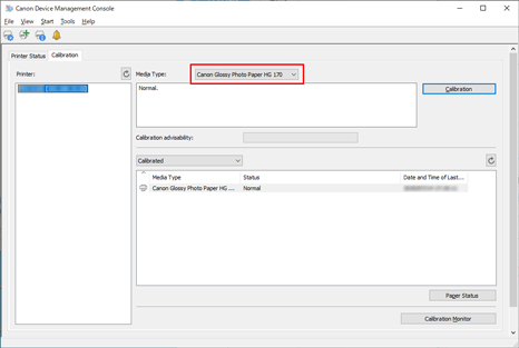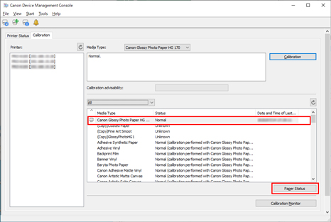 Sie können den Farbkalibrierungsstatus für das ausgewählte Papier überprüfen.