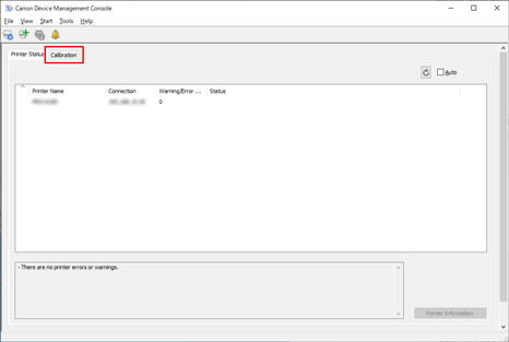 Auf der Registerkarte Kalibrierung des Hauptbildschirms können Sie eine Farbkalibrierung für den angezeigten Drucker durchführen.