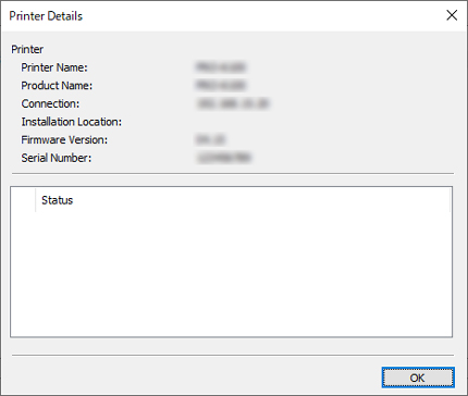 oder wählen Sie im Menü Datei (File) die Option Druckerdetails (Printer Details) aus, um das Dialogfeld Druckerdetails (Printer Details) anzuzeigen.