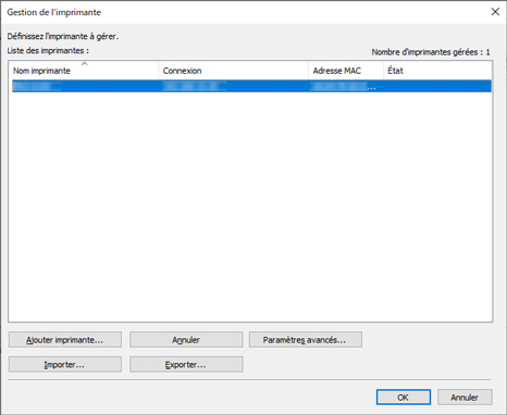 La boîte de dialogue Gestion de l'imprimante s'affiche.
