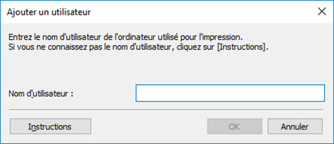 Vous devez également saisir le nom d'utilisateur de l'ordinateur qui exécute la tâche d'impression au moment où vous configurez les paramètres dans la procédure ci-dessus.